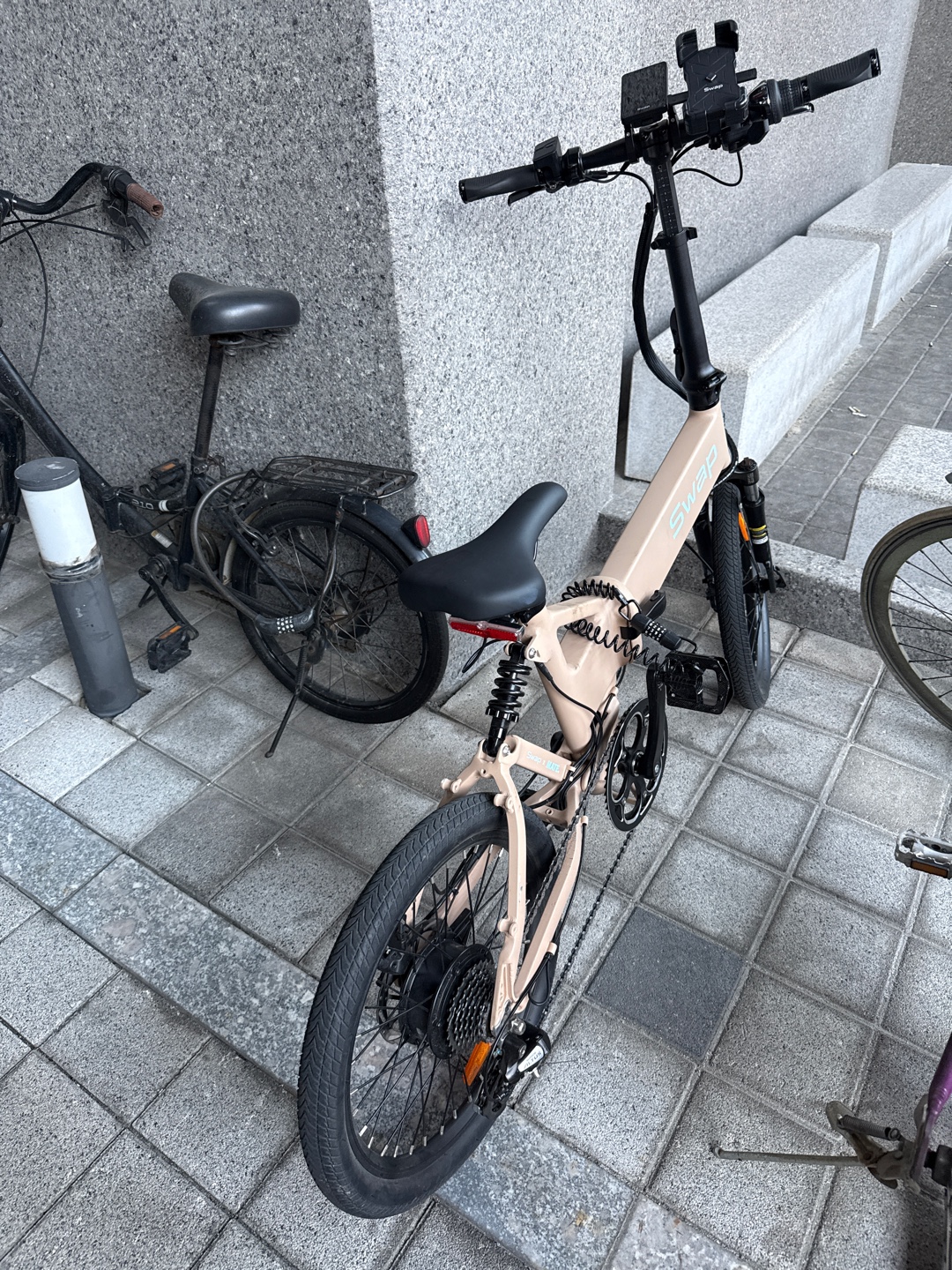 큰것도 좋았는데 너무 커서 사람들 많이 다니는 곳은 조금 불편하더라고요, 자주 멈춰야해서. 발이 땅에 안 닿았거든요 ㅎㅎㅎㅎ 작은걸로 바꾸니까 많이 편해요. 키 작은 여자 사람이 타기엔 이 크기가 더 좋은것같아요! 전기 자전거 타니까 너무 편하고 좋습니다!