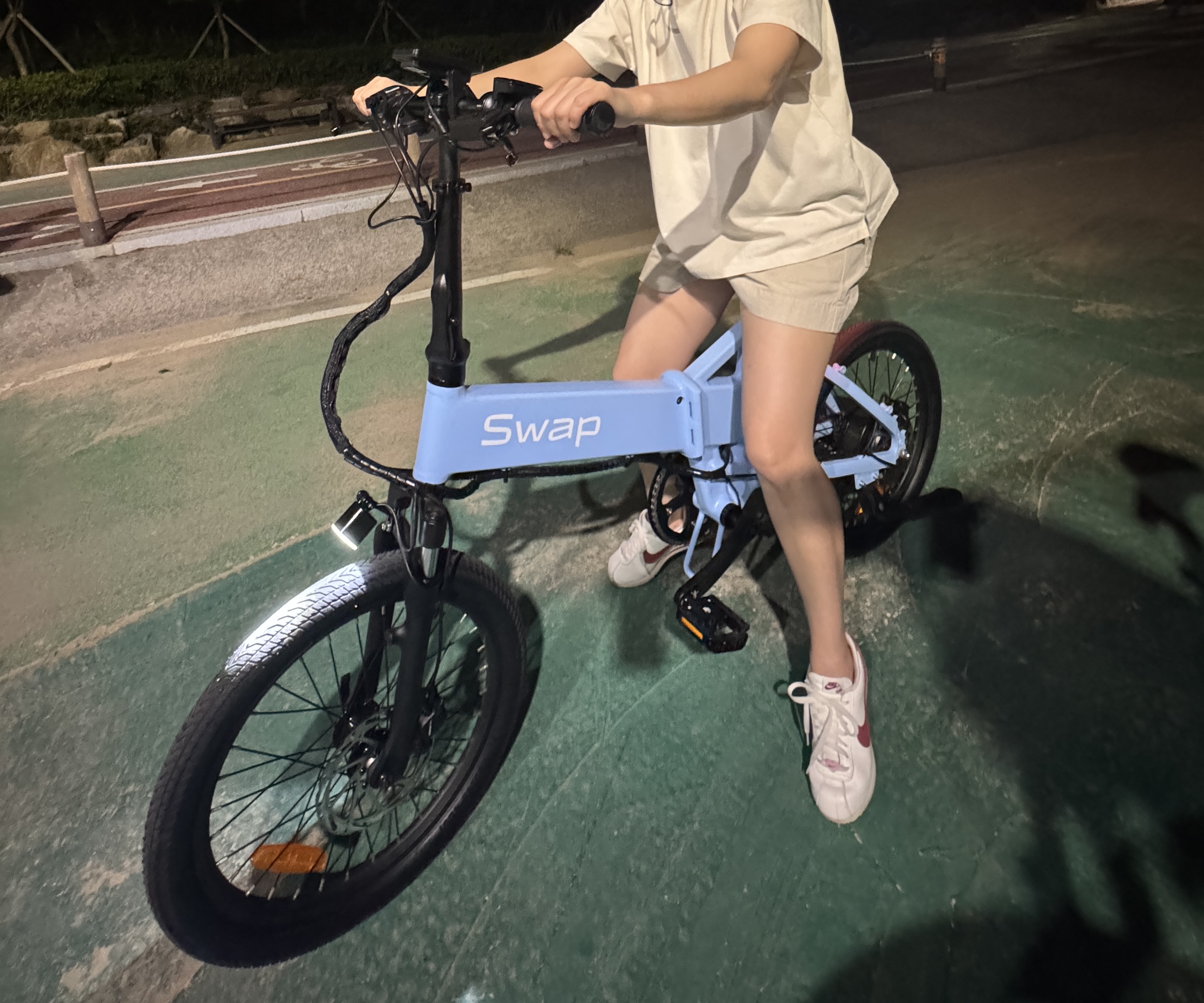 전기 자전거이지만 모터 개입 없이도 탈 수 있고 페달과 모터 하이브리드 모드로도 가능하고, 순전히 전기 모드로만도 운전가능해서 세가지 형태로 운전하기 편합니다. 배터리 성능은 아직 좀 더 타봐야겠고 그냥 주차만 해놔도 하루만에 100에서 83프로로 떨어지긴했어요. 무엇보다 아내 키에 잘 맞고 무거워서 불편할까했지만 운전은 부드럽게 잘 된다고 하네요. 단거리 출퇴근 시에도 활용할 수 있을것 같고 아주 만족스럽습니다. 구독료가 조금 부담스런 수준인거만 빼고 다 좋아요.